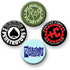 The industry standard, 1″ round pin, is a low cost, effective promo item, plus they make great memorabilia. We now offer 4 SIZES: